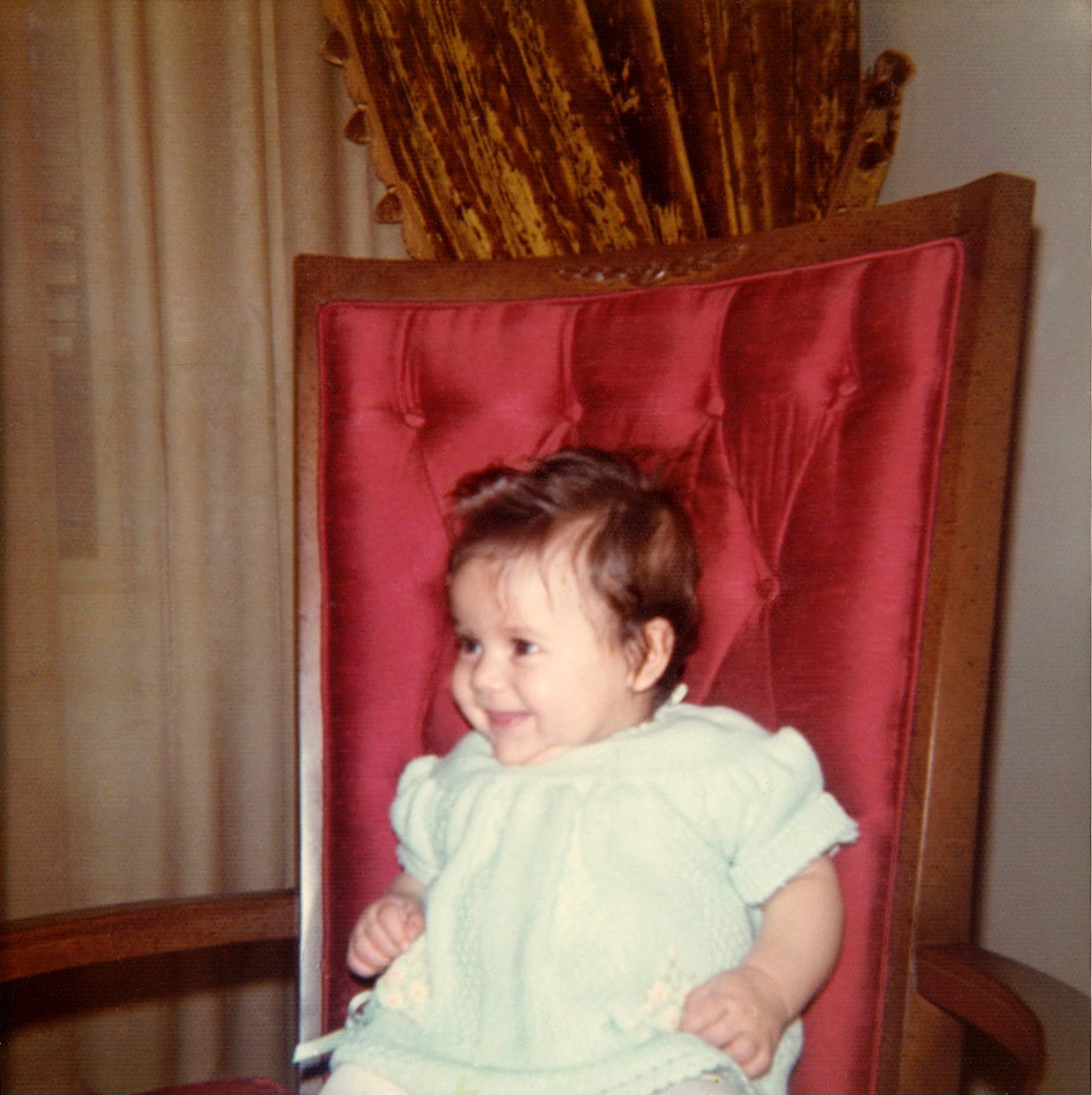 Her grandmother’s house always felt safe and the living room always felt occupied. Two red velvet armchairs faced inward with yellow velvet drapes that framed the room. Porcelain figurines—women and biblical figures frozen mid-gesture—lined the shelves, witnesses to the room. A crystal candlestick holder caught whatever light passed through, making a prism, insisting on beauty even in broad daylight.